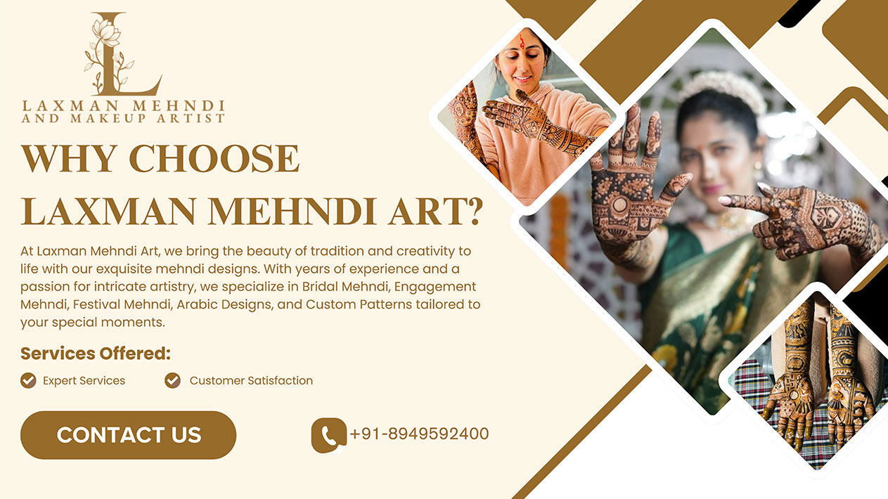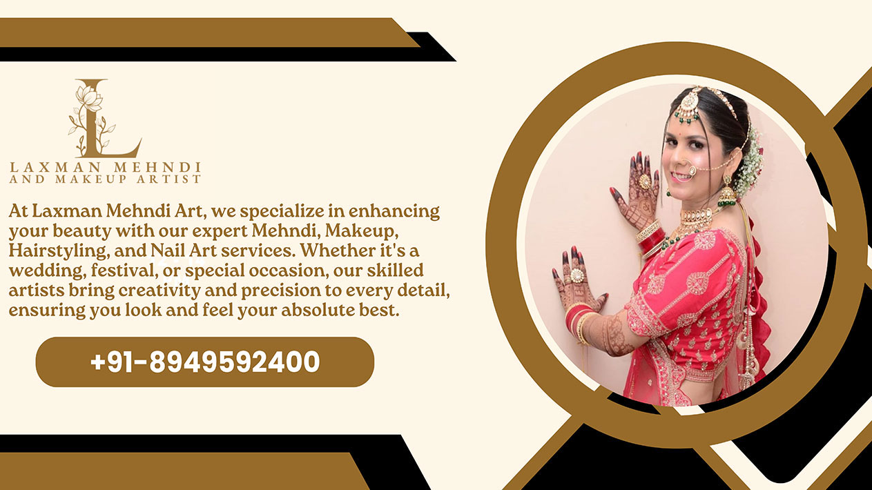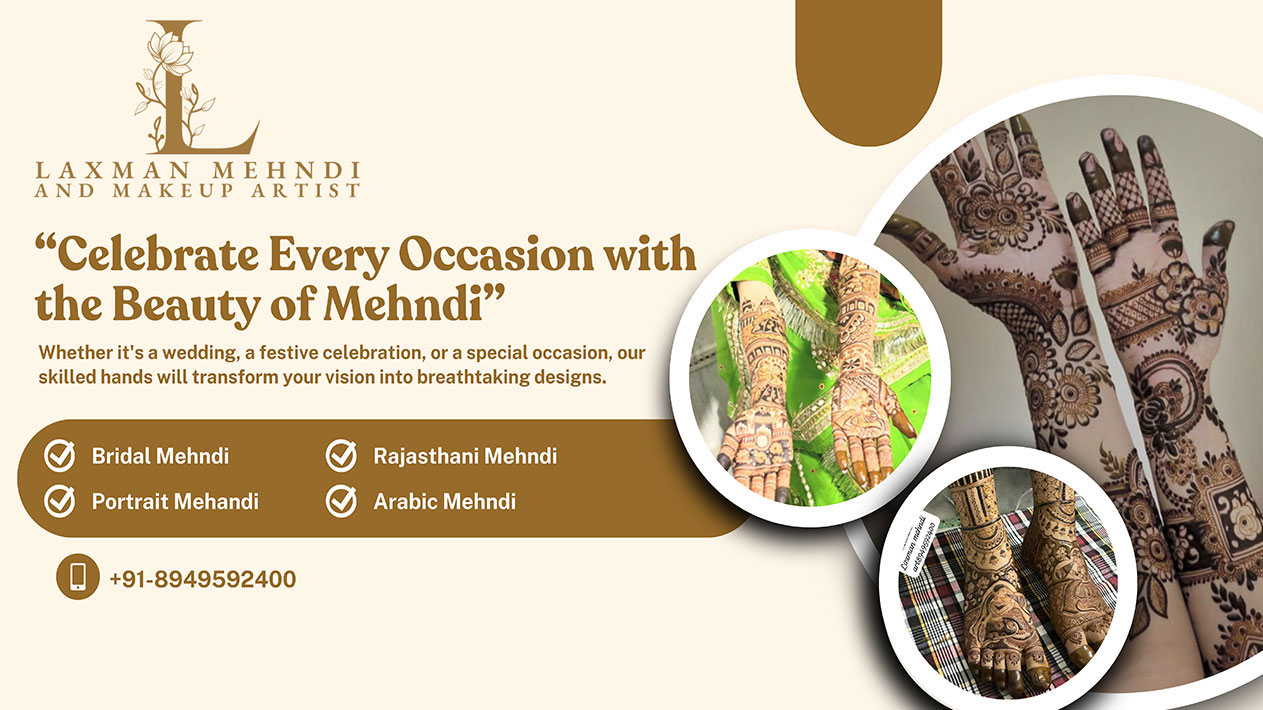Laxman Mehndi and Makeup Artist provides the best Mehandi Artist At Home services in Bikaner, Rajasthan, Sikar, Nokha, Jaipur, Alwar, Kota, Bhilwara, Udaipur, Jodhpur, Barmer, Jaisalmer, Nagpur, and Ajmer